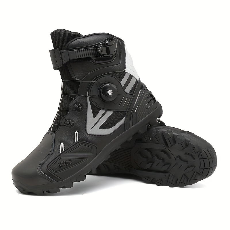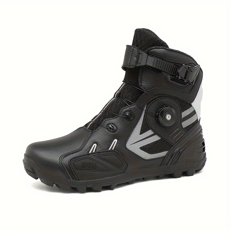 Men's Professional High Top Riding Boots With Reflective Design & Rotating Buckle, Comfy Non Slip Casual Durable Motorbike Shoes, Men's Footwear