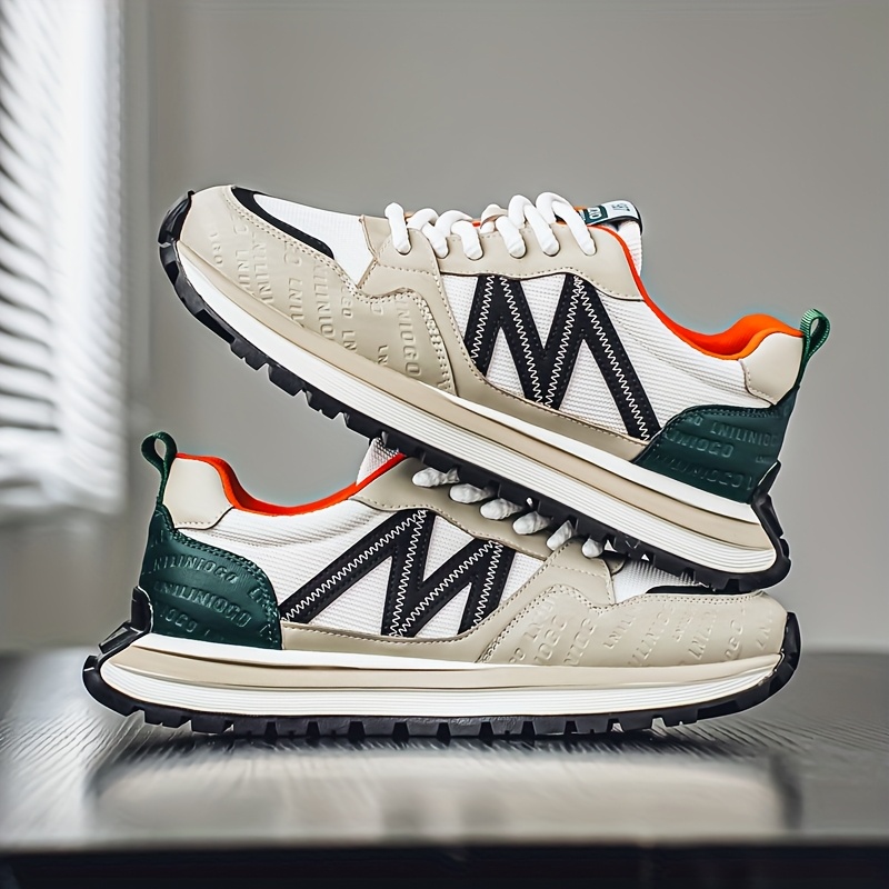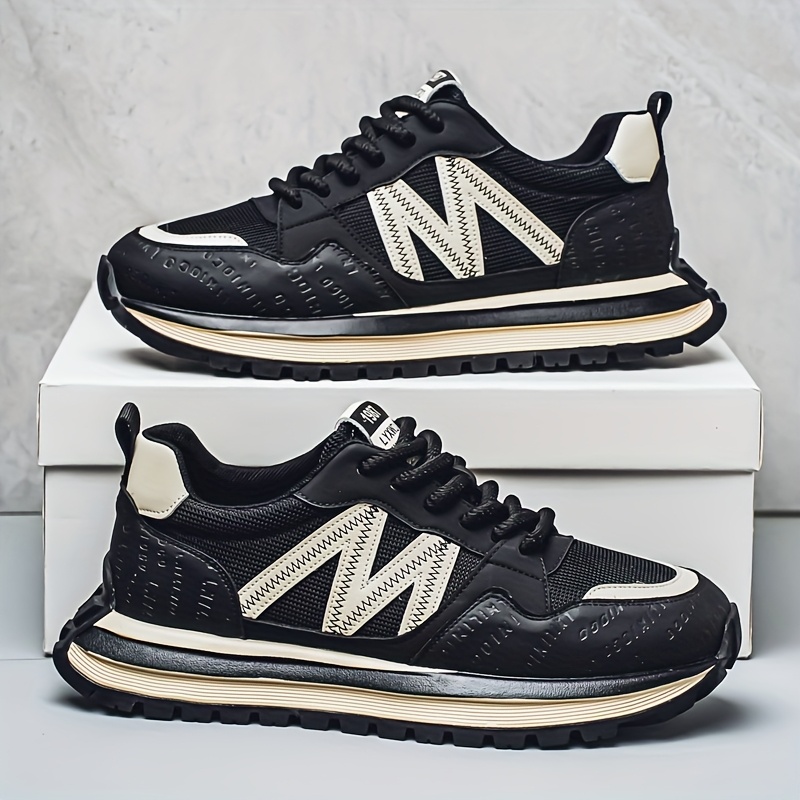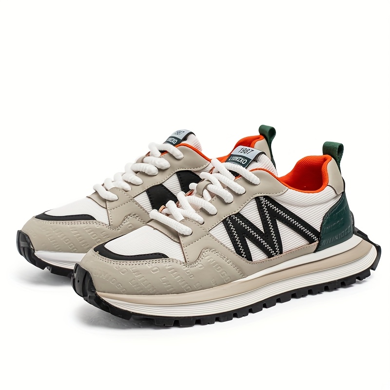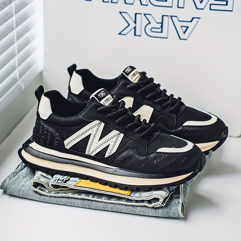 Men'S Breathable Fashion Sneakers - Lightweight, Durable Thick Sole Casual Shoes, Low-Top Lace-Up, All-Season Wear, White with Blue & Black Accents, Everyday Sneakers | Trendy Dad Shoes | Comfortable Fit