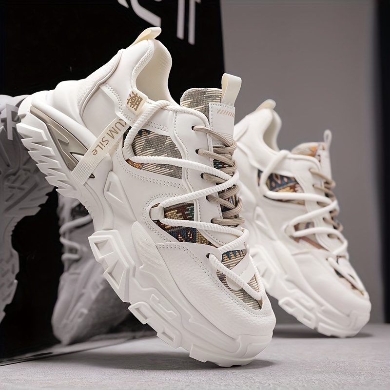 Men's Fashion Dad Shoes - Casual & Athletic Sneakers with Mesh Upper, Breathable Design, White & Multicolor Pattern, Comfortable for Casual Attire, Running, and Sports