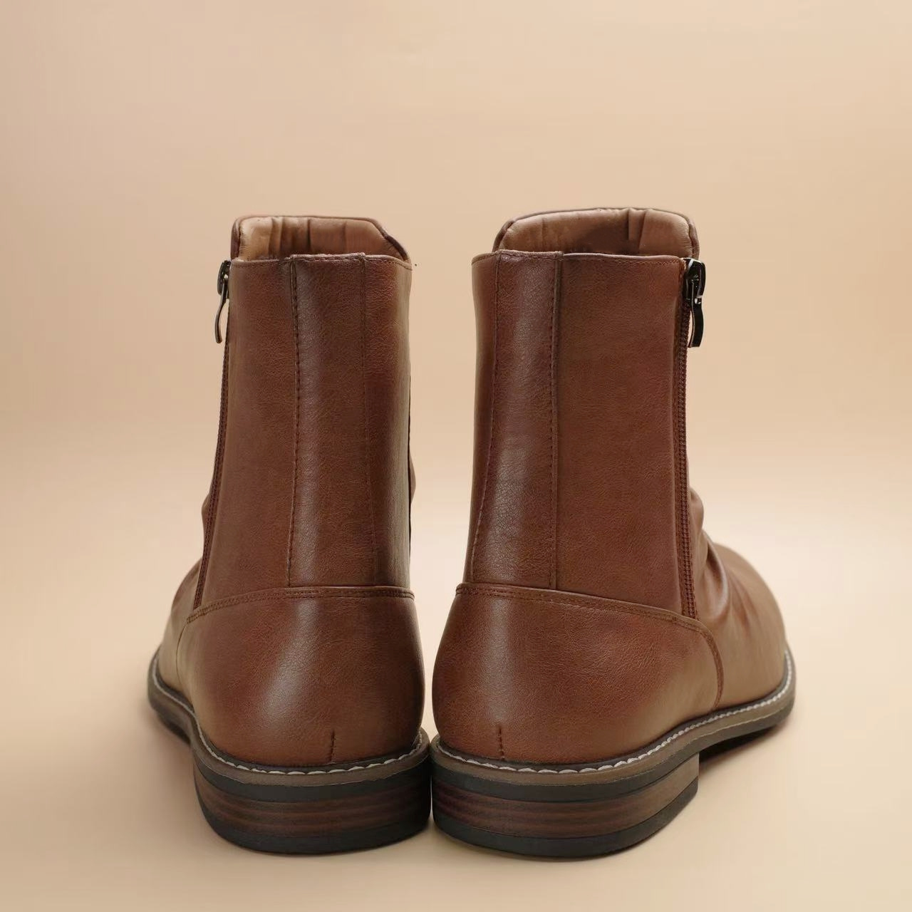 Men'S Slip-On Zipper Closure Ankle Boots - Faux Cover, Brown, Round Toe, Rubber Sole, Casual & Formal Wear, Casual Footwear | Sleek Boot Design | Durable Rubber Sole