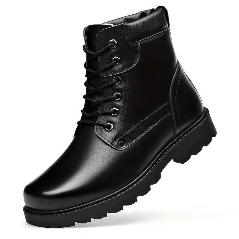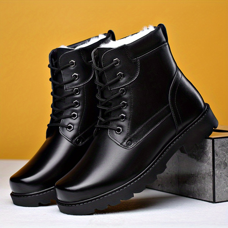 Men's Solid Color Lace-Up Short Boots, Microfiber Synthetic Upper, Fabric Inner & Insole, Rubber Sole, with Non-Slip Walking Shoes