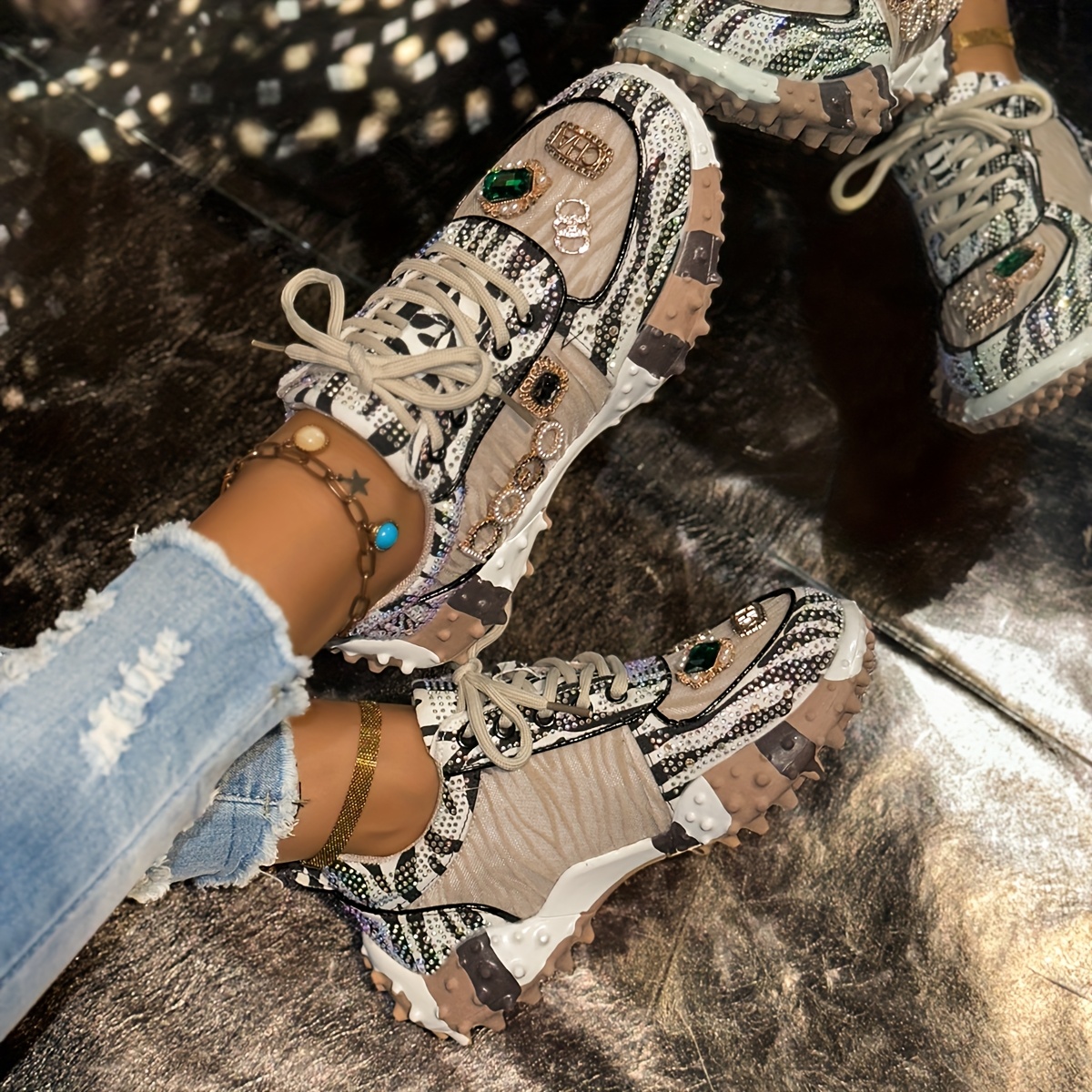 Women'S Fashion Sneakers - Thick-Soled Wedge Shoes with Glitter Upper, Durable Rubber Sole - Breathable Fabric Upper - All-Season Casual White Shoes for Casual Attire - Perfect Holiday Gift, Sneaker For Women, Stylish Sneaker For Women, Shoe For Women