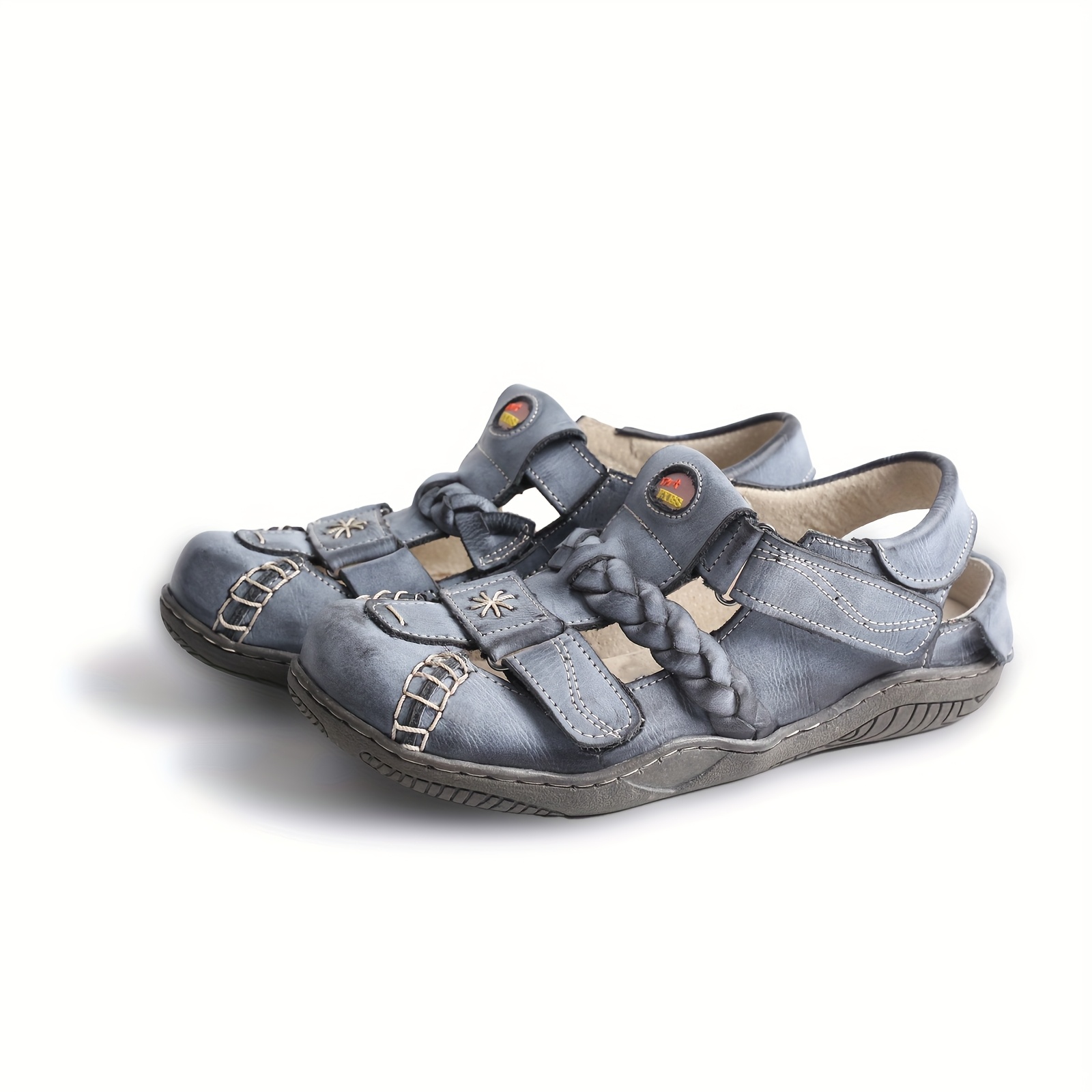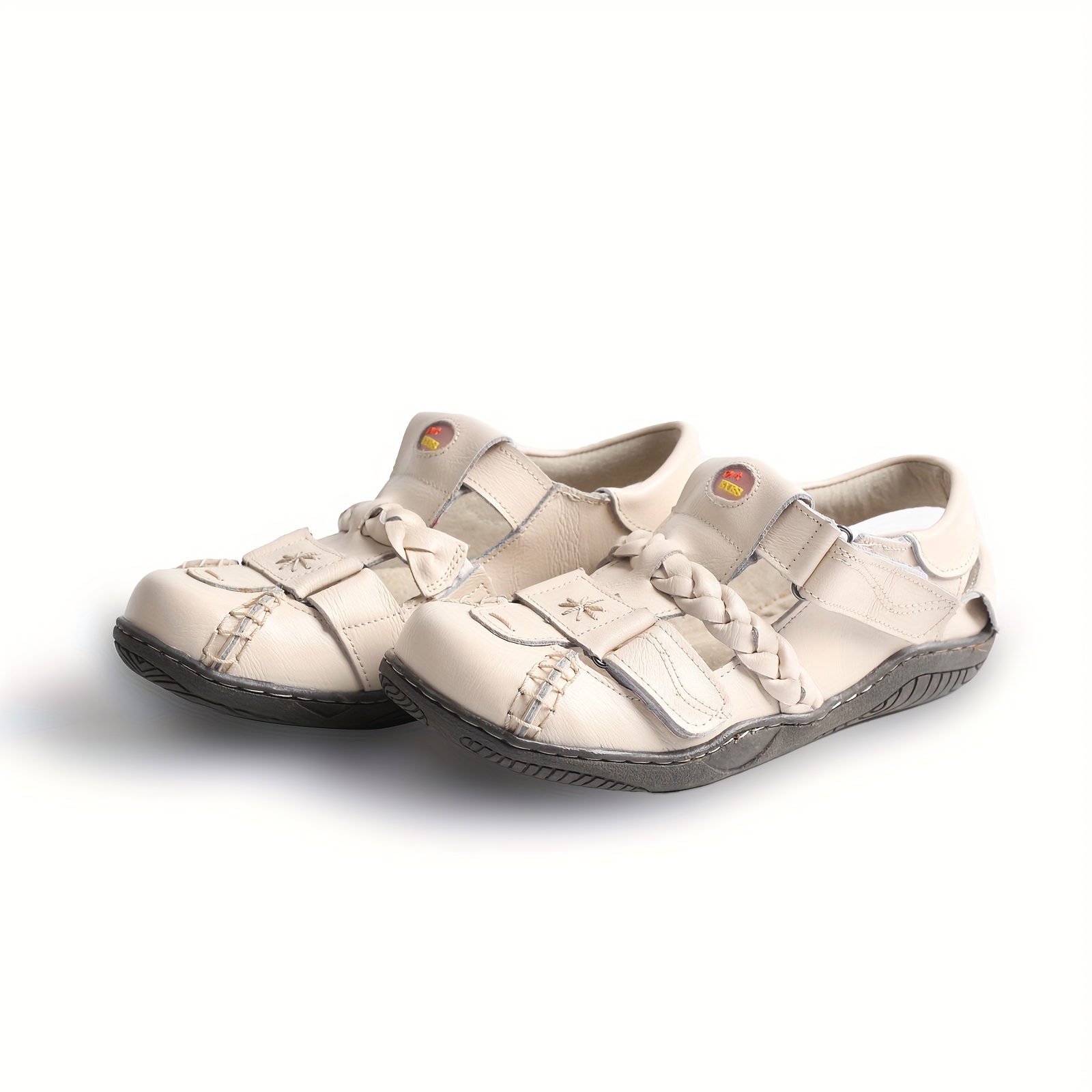 [French Retro Sandals] TMA EYES French Retro Women's Summer Sandals | Adjustable Hook-and-Loop Closure, Breathable Hollow-Out Toe, Low Heel & Cushioned Insole, Durable TPR Sole - Casual Comfort for Warm Weather, Strappy Sandals
