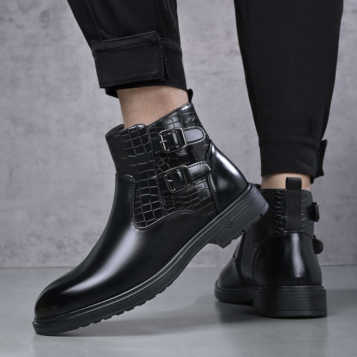 [Men's Ankle Boots] Slip-On & Zipper Closure Men's Ankle Boots | Synthetic Upper, Cushioned Insole & Non-Slip Rubber Outsole | Formal & Casual, Easy-Clean Black, Fall/Winter, Party Footwear, Embossed Animal Design, Durable Traction, Office Wear, Classic Style, Sturdy Construction, Fashion Enthusiasts