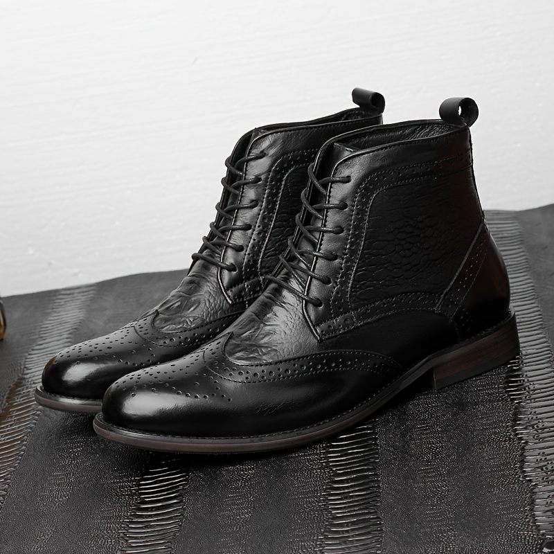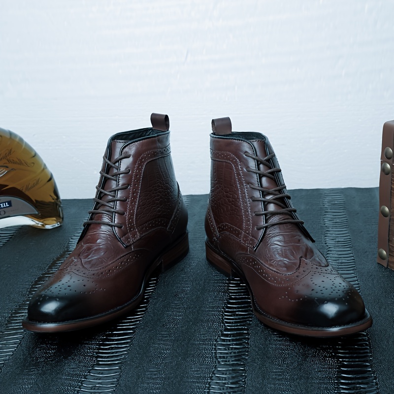 Men'S British Style Brogue High-Top Boots - Soft Faux Upper, Non-Slip Rubber Sole, Lace-Up Mid-Calf Boots for All-Season Casual & Formal Wear, Durable & Comfortable Design, Formal Footwear, Classic Round Toe, Durable Footwear, Men Boot, Boot For Men Suit, Men Thermal Dress Boot, Fleece-lined Insoles, Cold-weather Fleece-lined Jeans, Men Dress Shoe, Men Boots, Men Shoe