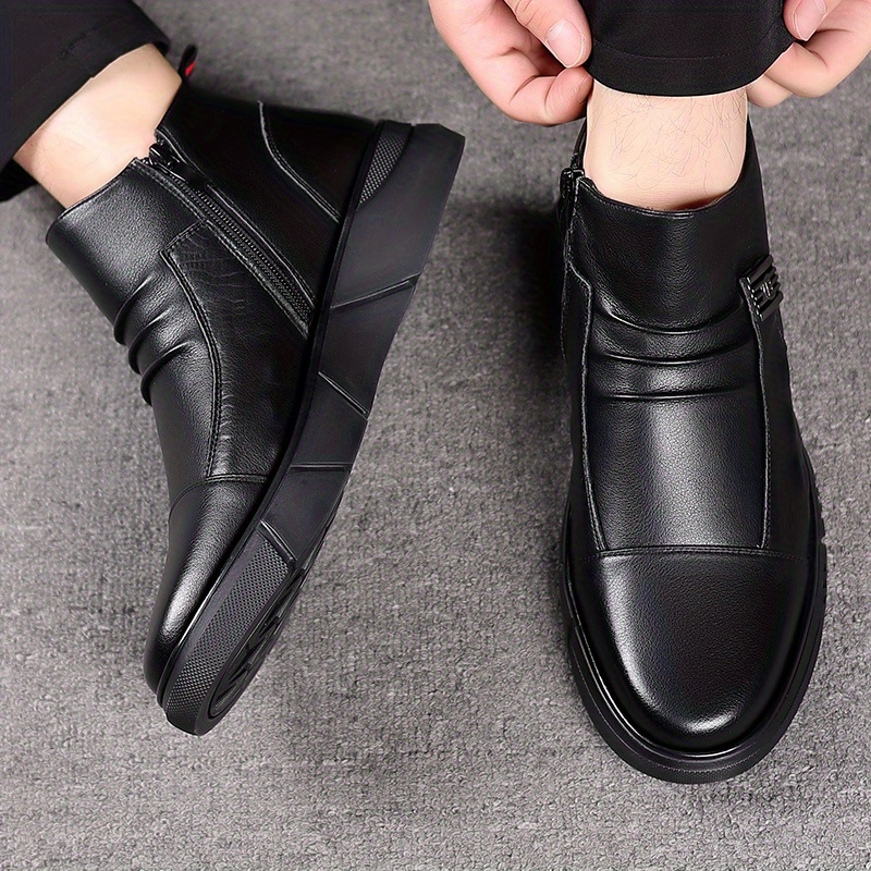 Men'S Business Casual High-Top Ankle Boots with Side Zipper - Comfortable Non-Slip Thick Sole, Breathable Microfiber Synthetic & Faux Lining, Durable Rubber Outsole for Office, Outdoor, and Casual Attire - Black, Office Footwear, Modern Footwear, Secure Fit Footwear, Men'S Shoes, Height-increasing Landrova For Men, Casual Sports Shoes For Men, School Shoes For Teenage , Men Shoe