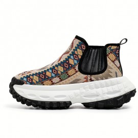 Men'S All-Season Hiking Shoes - Slip-On/Lace-Up Closure, Breathable Fabric Upper & Non-Slip PVC Outsole, Mid-Calf Support for Outdoor, Gym, Everyday - Beige/Blue/Black/Red/White/ - Durable Trekking Shoes for Men, Outdoor Footwear, Geometric Pattern, Secure Fit, Versatile Footwear, Active Lifestyle, Shoe For Men High Quality