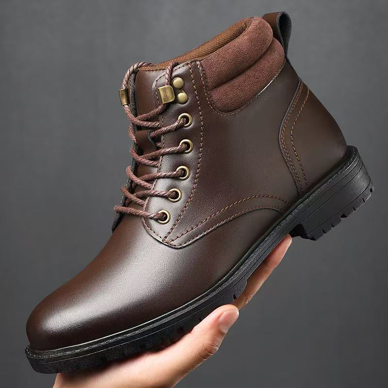 Men'S High-Top Ankle Boots - Non-Slip Thick Rubber Sole, All-Weather Comfort, Lace-Up Work Boots with Cushioned Insole - BrownTan - All-Season Outdoor & Office, Travel Boots For Men - Ideal For Hiking, Camping, Work - Durable Pu Construction