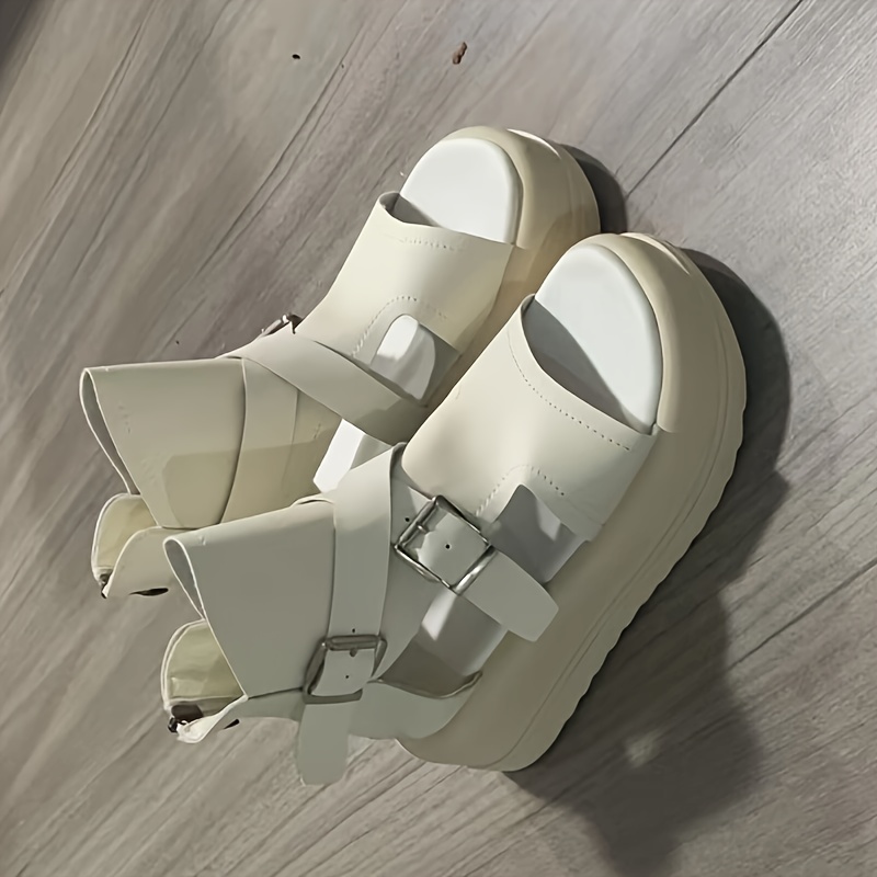 Women'S Fashionable Thick Sole Sandals - Beige, Open-Toe, Buckle Closure, Flat Heel, Synthetic Upper & Insole, Rubber Sole, Casual Footwear|Buckle Closure Sandals|Rubber Sole Sandals